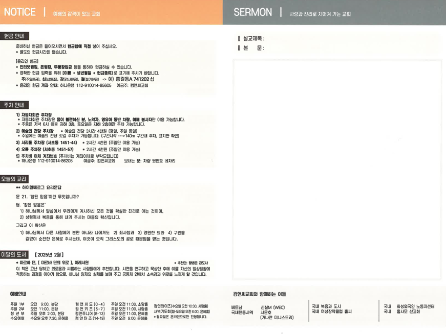 컴앤씨교회 주보를 확인하세요.