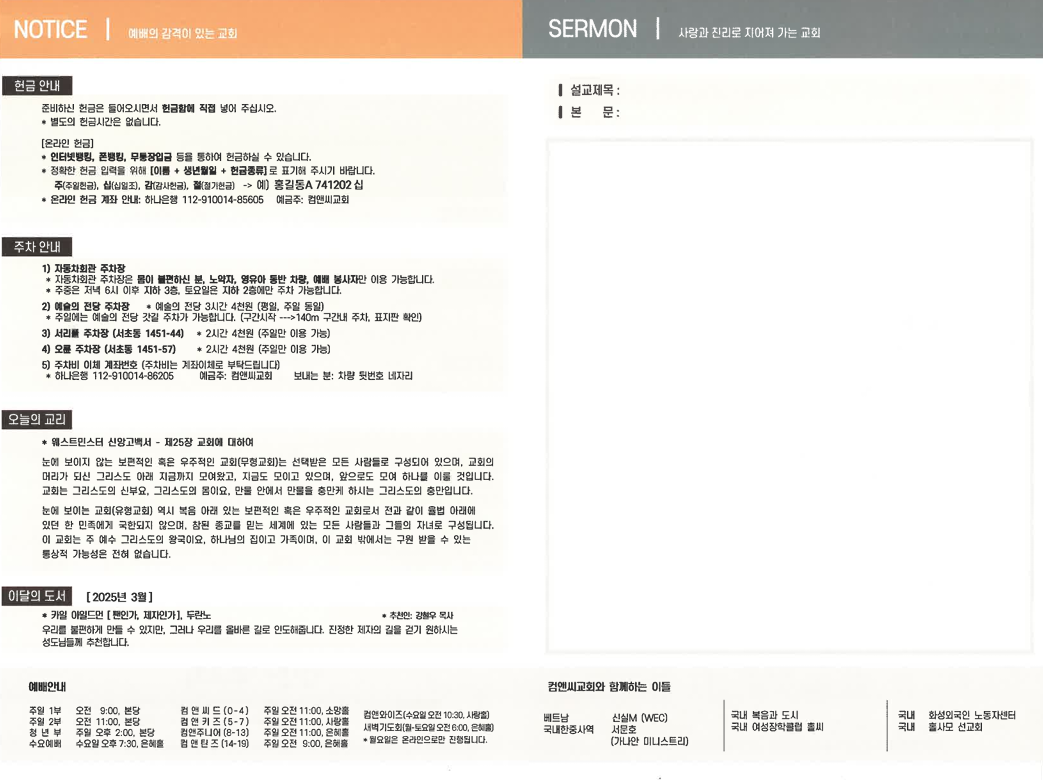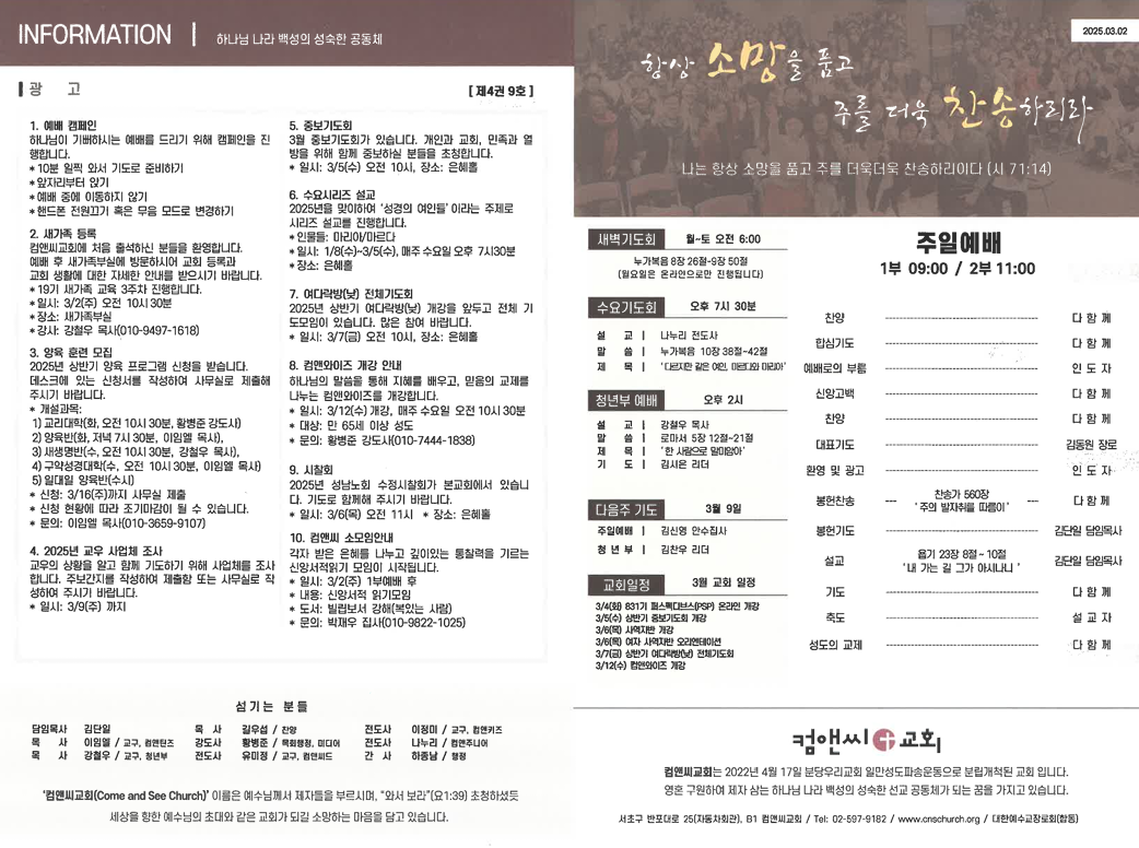 컴앤씨교회 주보를 확인하세요.
