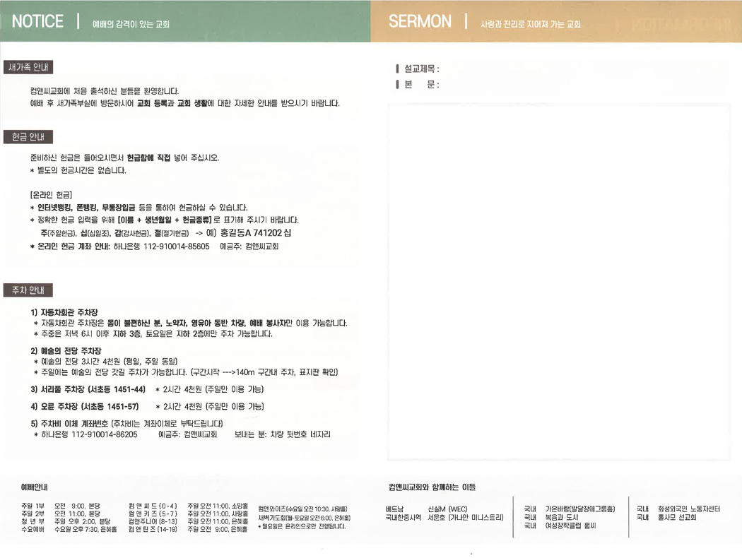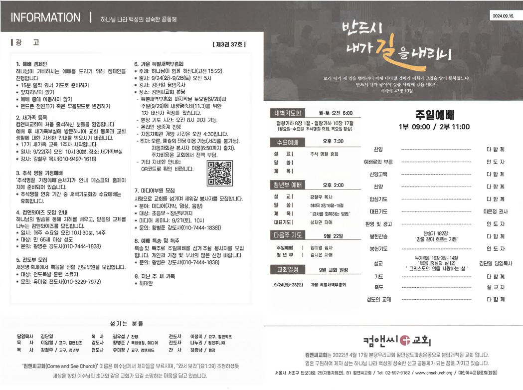 컴앤씨교회 주보를 확인하세요.